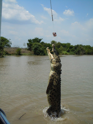 They got many crocs jumping out of the water for us, so we grabbed lots of